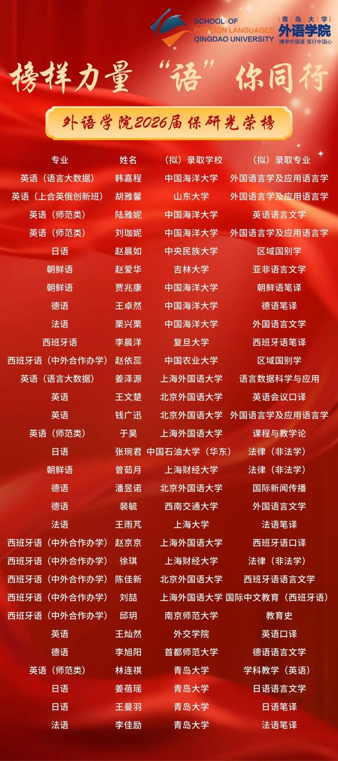 星光不负赶路人,时光终酬奋斗者。让我们以这些优秀的保研学子为榜样,见贤思齐、奋勇争先,将他们的奋斗精神化作自己前进的力量。愿我们都能以梦为马,不负韶华,在未来的道路上书写属于自己的辉煌!